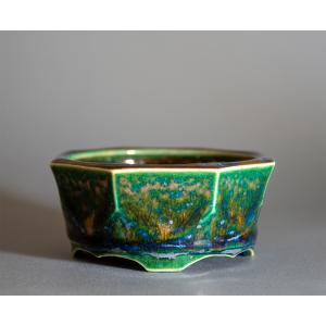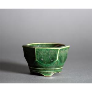 盆栽鉢 3号 織部釉八角盆栽鉢 小品盆栽鉢 小さな盆栽鉢 國井正子盆栽鉢 盆栽鉢作家 p1280