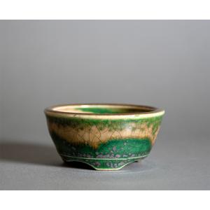 ミニ盆栽鉢 織部釉 丸盆栽鉢 小さな盆栽鉢 國井正子盆栽鉢 盆栽鉢作家 p1360