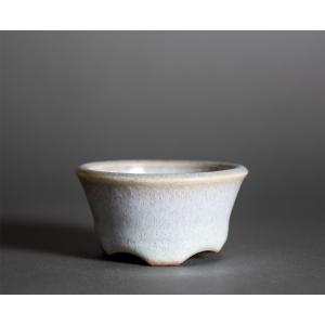ミニ盆栽鉢 白流紋釉 丸盆栽鉢 小さな盆栽鉢 國井正子盆栽鉢 盆栽鉢作家 p1452