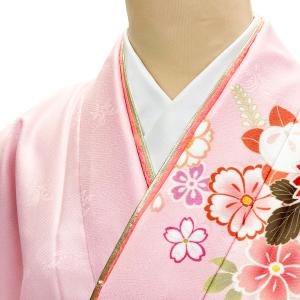 重ね衿 伊達衿 No.06 ゴールド 薄紅色 サーモンピンク 留めピン付き 振袖用 訪問着用 附下用 色無地用 在庫処分品 【郵便】