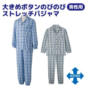 【ワンタッチのびのびストレッチパジャマ】 紳士 介護用 マジックテープ 飾りボタン付 ストレッチ素材 着脱らくらく メンズ 男性用 S~LL