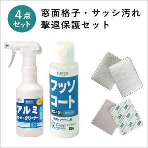 窓面格子・サッシ汚れ撃退・保護4点セット (アルミクリーナー300g&フッソコート80g&専用パッド 2種 各1枚 )