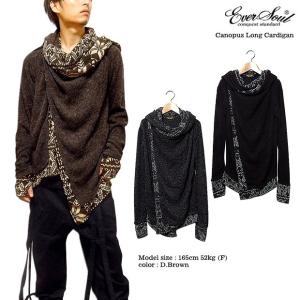 EVERSOUL ロングカーディガン メンズ ニット カーディガン ロング アフガン タートルネック 暖かい ベージュ ブラック 杢グレー 秋 冬 美容師