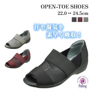 パンジー オープントゥシューズ 4482 サマーシューズ レディース メッシュ 通気性 軽量 夏用 ブラック ワイン グレー 22.0cm?24.5cm オフィス用 旅行用