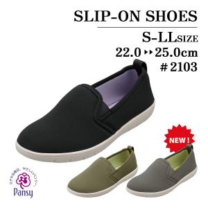 パンジー 2103 レディース スリップオンシューズ 軽量 ストレッチ 婦人用 通気性 ソフトニット素材 ブラック カーキ グレー S M L LL 日本製 履きやすい 軽い