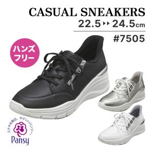 スニーカー パンジー PS1391 レディース 軽量 シューズ 3E 合成皮革 スリッポン 通勤 通学 旅行 黒 22-24.5cm 3.5cmヒール