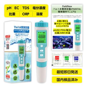 水質測定器 7 in 1 ph/EC/TDS/塩分濃度/比重/ORP/温度 FieldNew 6カ月保証 水質検査キット 防水