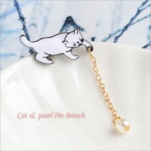 ブローチ 猫 キャット パール ストールピン クリップ 母の日 敬老の日 プレゼント 入学式 卒業式 送料無料