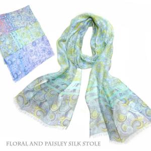 ストール レディース 花柄とペイズリーのシルクストール uv 春 夏 春夏 母の日 ギフト プレゼント 入学式 ストール 夏