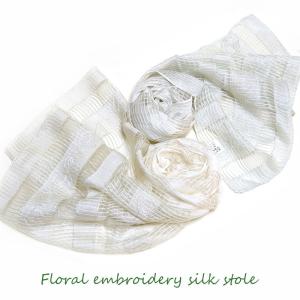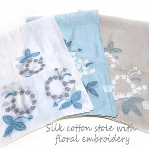 ストール 花とボタニカル柄刺繍のシルクコットンストール レディース 春 夏 春夏 母の日 プレゼント ストール 夏