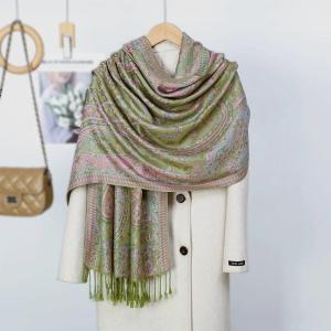 大判ストール 190×70cm ペイズリー柄 レディース ショール マフラー 薄手 春 秋 冬 グリーン 上品 エレガント 肩掛け 防寒 フリンジ ギフト