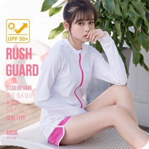 ラッシュガード レディース 長袖 選べる指穴(付きor無し) UPF50+ 日焼け防止 薄手 体型カバー ジップアップ フード パーカー(配送:メール便ok )