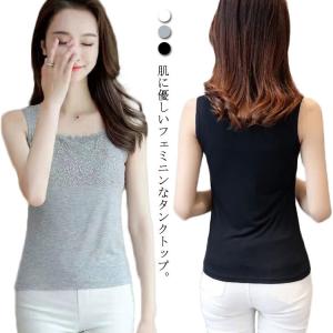 【送料無料】タンクトップ レイヤード レディース ノースリーブ インナー レース 花柄 無地 シンプル 袖なし 透け防止 大きいサイズ スクエアネック