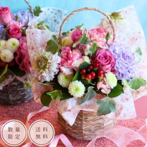 花 母の日 アレンジメント フラワーギフト 花かご バスケット 2026 mothersday プレゼント 生花 バラ トルコキキョウ お母さん 義母 日にち指定OK