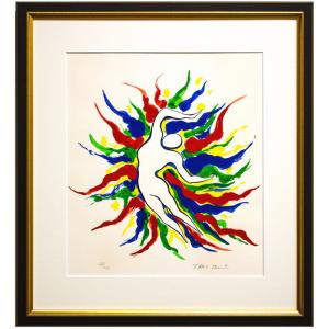 岡本太郎 「 愛と平和 」肉筆サイン入り リトグラフ 版画 版画 絵画 抽象画 芸術 爆発 現代アート 人間 人気 原色 派手 送料無料