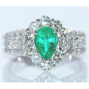 ペアシェイプカット エメラルド-0.81ct&ダイヤモンド ゴージャス プラチナ デザインリング (指輪)