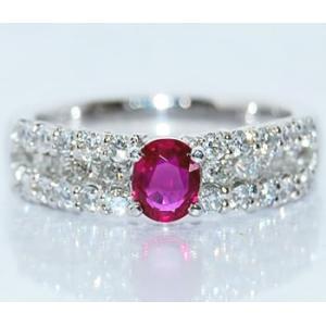 オーバルシェイプ ルビー-0.48ct&ダイヤモンド プラチナ デザインリング (指輪)