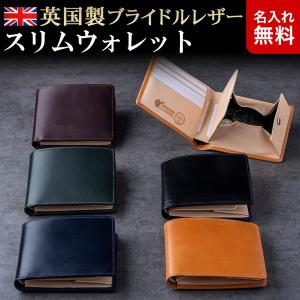 財布 スリム財布 メンズ 二つ折り コンパクト ブランド 本革 英国製ブライドルレザー ボックス型 薄型 名入れ 無料