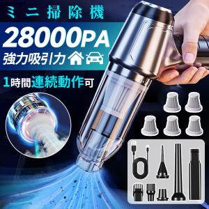 ハンディクリーナー 車用掃除機 クリーナー コードレス 28000pa ミニ掃除機 1H連続運転 充電式 掃除機 強力 静音 ブラシレスモーター 小型 軽量 車用 家用 洗車