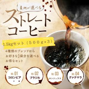 送料無料 コーヒー コーヒー豆 コーヒー粉 150杯 1.5kg 飲み比べ 鮮度の頂点 選べる ストレート 500g×3 ポイント消化 コロンビア ブラジル ガテマラ エチオピア
