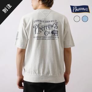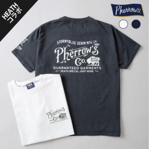 Pherrow's フェローズ 別注 Tシャツ メンズ 半袖 厚手 ヘビーオンス ガゼット 日本製 バックプリント ロゴ アメカジ ヴィンテージ加工 大きいサイズ HEATH M-2XL