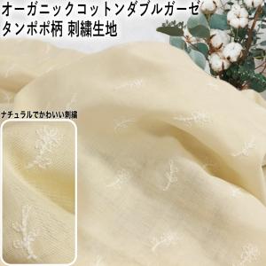 オーガニック コットン ダブルガーゼ tanpopo タンポポ 柄 刺繍 生地 生成り×ホワイト 10cm単位 品番syo-2008 3mまでネコポス可