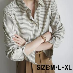 トップス シャツ ブラウス 長袖 レディース ストライプ柄 オーバーシャツ オーバーブラウス 秋 冬 春 ドレープ ゆったり 体型カバー