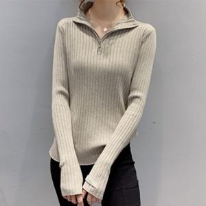 ニット セーター ハーフジップ ハイネック スタンドカラー レディース トップス 長袖 リブ スリム インナー 無地 ストレッチ