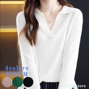 ニット セーター 襟付き Vネック ポロえり レディース トップス 冬 秋 春 無地 長袖 かわいい おしゃれ シャープ 無地