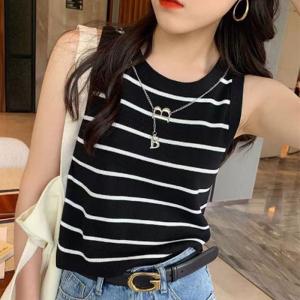 ニット レディース ノースリーブ 袖なし トップス 夏 サマーニット ボーダー サマーセーター