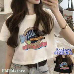 レディースtシャツ 半袖 Tシャツ クロップド ショート丈 綿 コットン 短め レトロ Y2K カットソー かわいい サーフ系 韓国ファッション