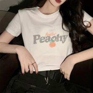 レディース Tシャツ tシャツ 半袖 トップス クロップド ショート丈 プリント カットソー 夏 春 かわいい Y2K 短め インナー
