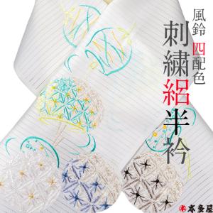 半襟 半衿 絽 絽半襟 絽半衿 刺繍 風鈴 模様 夏 単衣 涼しい 日本製 白 ホワイト 金 ゴールド 黒 ブラック グレー 灰 青 藍 ブルー エメラルド グリーン 緑 黄緑