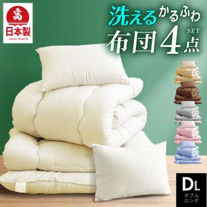 日本製 送料無料 布団4点セット ダブル ロング 洗える国産 布団セット ダブル ふとんセット 軽い 送料無料 ホコリが出にくい 掛け布団
