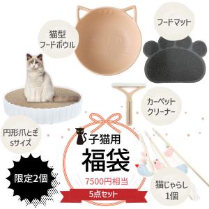 福袋 ペット用 猫型 陶器 フードボウル 爪とぎ 円形 フードマット 猫じゃらし T字ブラシ お掃除ブラシ食器 猫用 プレゼント