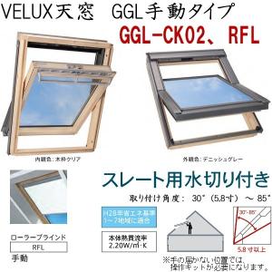 輸入建材ショップ/VELUX ベルックス天窓 GGL手動タイプ サイズ:CK02、RFL・手動ローラーブラインド、スレート用水切り、[ガラス]選択