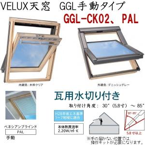輸入建材ショップ/VELUX ベルックス天窓 GGL手動タイプ サイズ:CK02、PAL・手動ベネシアンブラインド、瓦用水切り、[ガラス]選択
