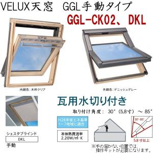 輸入建材ショップ/VELUX ベルックス天窓 GGL手動タイプ サイズ:CK02、DKL・手動シェスタブラインド、瓦用水切り、[ガラス]選択