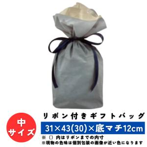 ギフトバック ラッピング袋 中 梨地 リボン付き マチ付き