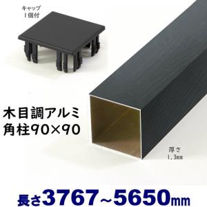 アルミ角柱 木目調 90角L5650mm 厚み1.3mm ブラックウッド キャップ1個付 支柱 角パイプ