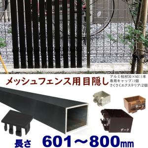 メッシュフェンス用目隠し 木目調 後付け 簡単取付 ダーク アルミ柱材30X40XL600mm 厚み1.8mm キャップ付 さくさくエクステリアセット