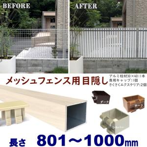 メッシュフェンス用目隠し 後付け 簡単取付 シルバー アルミ柱材30X40XL800mm 厚み1.6mm キャップ付 さくさくエクステリアセット