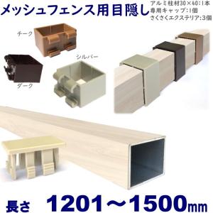 メッシュフェンス用目隠し 木目調 後付け 簡単取付 ダーク アルミ柱材30X40XL1200mm 厚み1.8mm キャップ付 さくさくエクステリアセット
