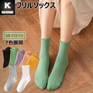 【10点で10%クーポン】 ソックス 靴下 綿70% レディース クルーソックス クルーソックス 女性 コットン 可愛い [フリルソックス]