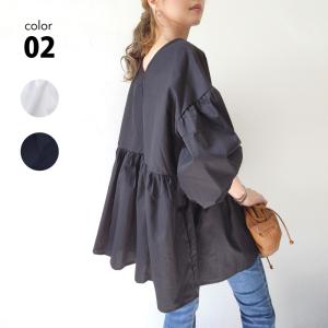 ティアードチュニック ぽわん袖 ブラウス レディース チュニック ドロップショルダー 七分袖 バルーンスリーブ ブラック ホワイト フリー ポワン袖