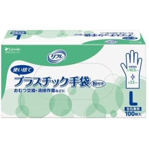 リフレ プラスチック手袋粉付きLサイズ(100枚入) 使い捨て手袋 感染予防 おむつ交換 介護用