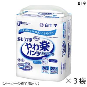 大人用紙おむつ PUサルバ やわ楽パンツ 安心うす型 M−Lサイズ 22枚入×3袋 ウエスト60〜95cm 約3回吸収 失禁 尿モレ