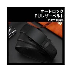 穴なしベルト メンズ オートロック PUレザー ブラック 黒 長さ調整 ビジネス カジュアル 父の日 プレゼント ギフト
