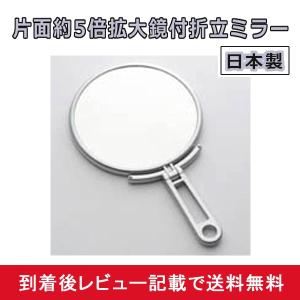 拡大鏡 ミラー 5倍 化粧 卓上 折立 手鏡 化粧鏡 メイク 鏡 スタンド 折りたたみ 日本製 シルバー (メール便対応・他商品同梱不可)