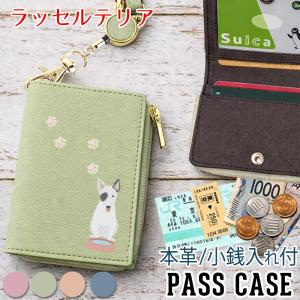 パスケース 本革 リール付き 定期入れ 二つ折り ラッセルテリア 犬 レディース 入学祝い 就職祝い プレゼント おしゃれ 2枚 ICカードケース 東京アンティーク